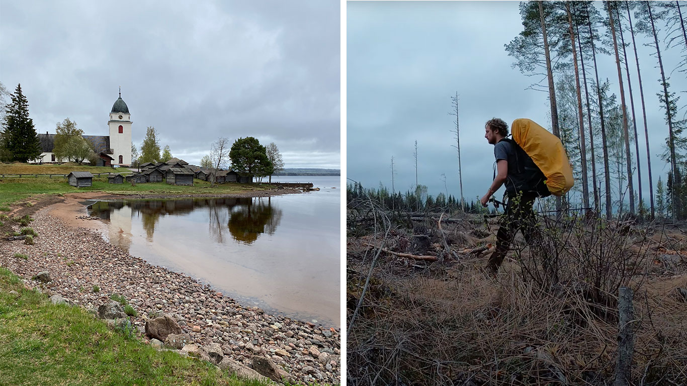 With food in our stomachs, we went back at it through the rain. The remaining trails before reaching a coastline were mostly on gravel roads within forests and some villages that we passed. With only about 4km left we were getting tired and stopped talking to each other, just focusing on progressing on the trail. Probably the bad weather was getting to us. We ultimately reached a coastline that we followed until Rättvik unveiled itself – our destination for the trek. The first sign of Rättvik was an old church that we hiked around which was beautifully located next to the lake Siljan along with some old cottages.