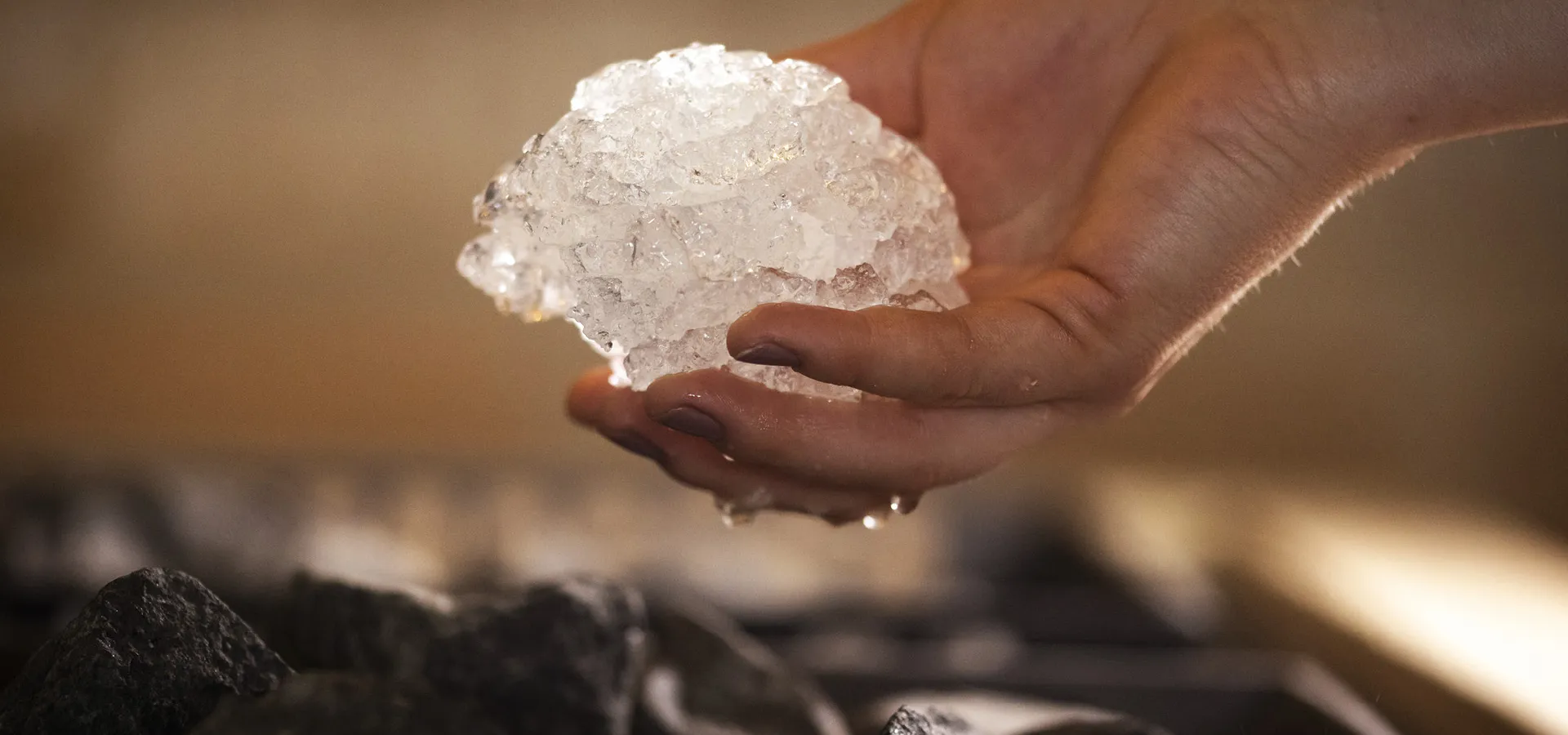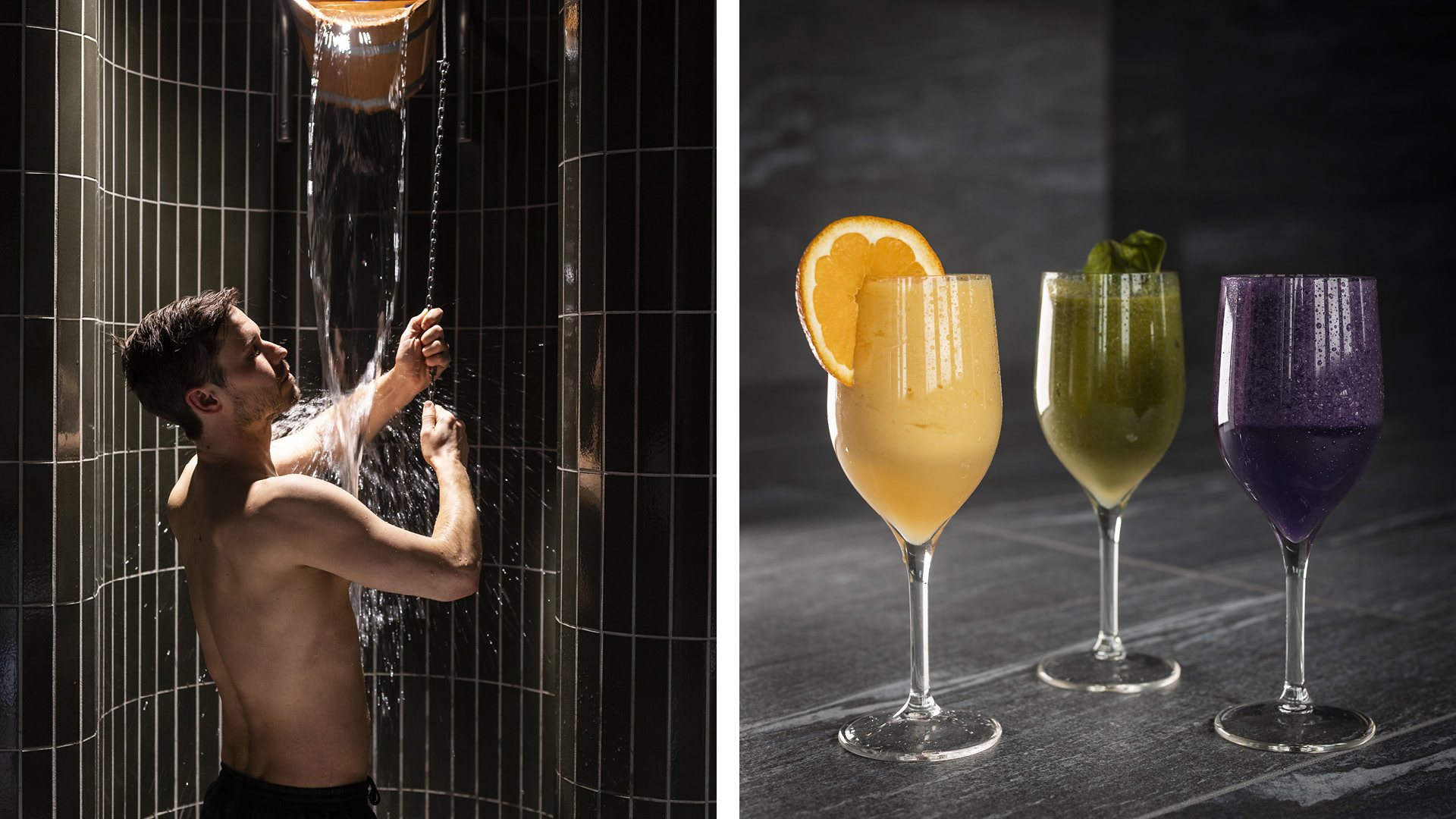 Efter att ha provat klangmassage och ytterligare en guidad meditation, tvagat kroppen med saltskrubb och faktiskt även gnuggat in benen med snö i isrummet, som är det enda i sitt slag i Norden, smakar en mangosmoothie underbart.