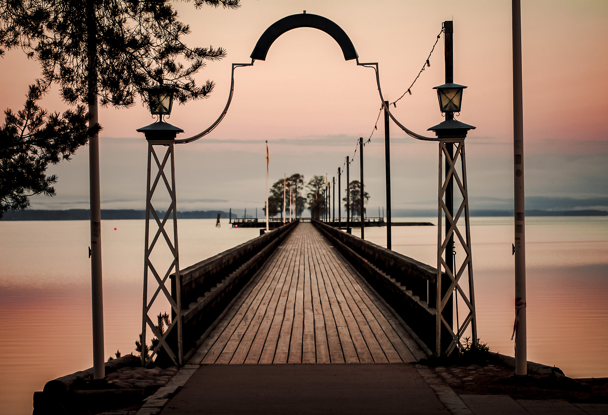 Helst en tidig sommarmorgon när det är tomt på folk och alldeles tyst och stilla. Har du tur är soluppgången magisk med sprakande färger, dessutom är bryggan väldigt vacker i sig. - Storstupet, Orsa