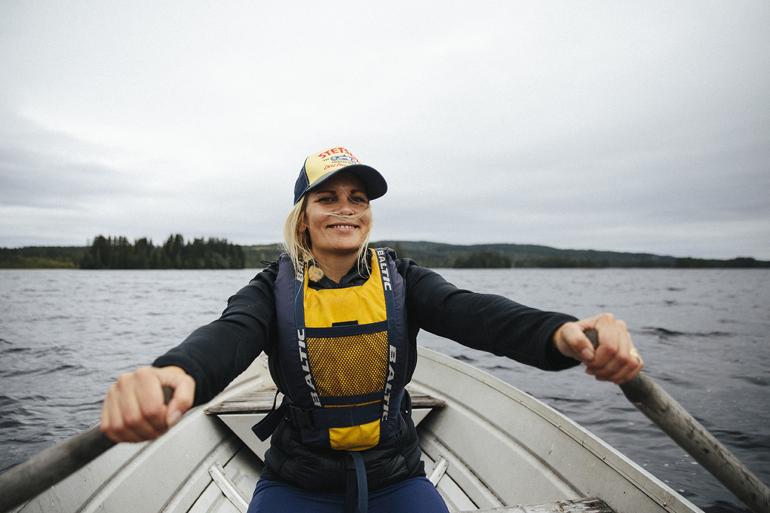 Att ha en restaurang att gå till där kockarna lagade frukost, lunch och middag medan vi gjorde annat var väldigt bekvämt. Vi kunde gå direkt från stigen in till restaurangen och när vi satt där i soffan framför brasan i loungen var vi ganska nöjda med att ha samlat nästan 20 000 steg. “Nu kör vi överkropp i stället” skrattade Katta när vi åkte ner till Säfssjön där man kan hyra kanoter och roddbåtar.