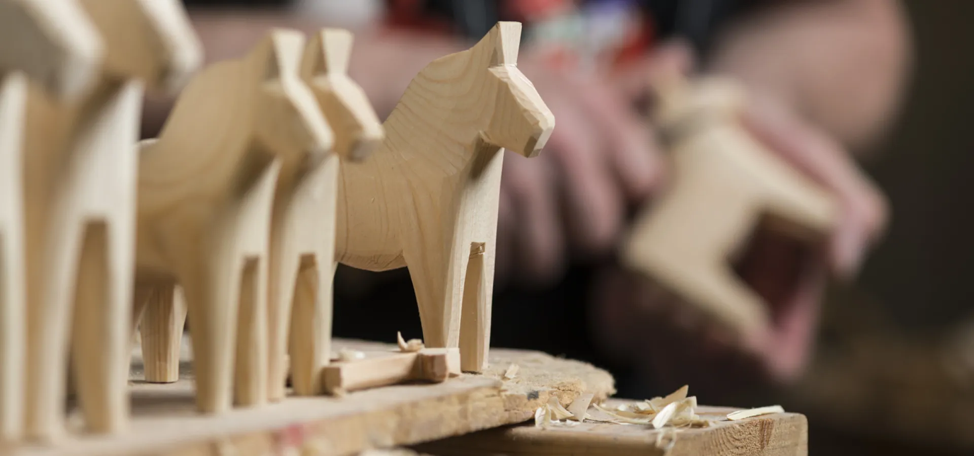 Träflisorna bildar en allt tätare ring kring stolen där John Eriksson sitter och täljer. Händerna rör sig vant över den ofärgade trähästen, greppet om den sylvassa täljkniven är stadigt. De kantiga vinklarna blir allt färre och fram växer istället de mjuka former som känns när man stryker handen över de färdigmålade dalahästarna.