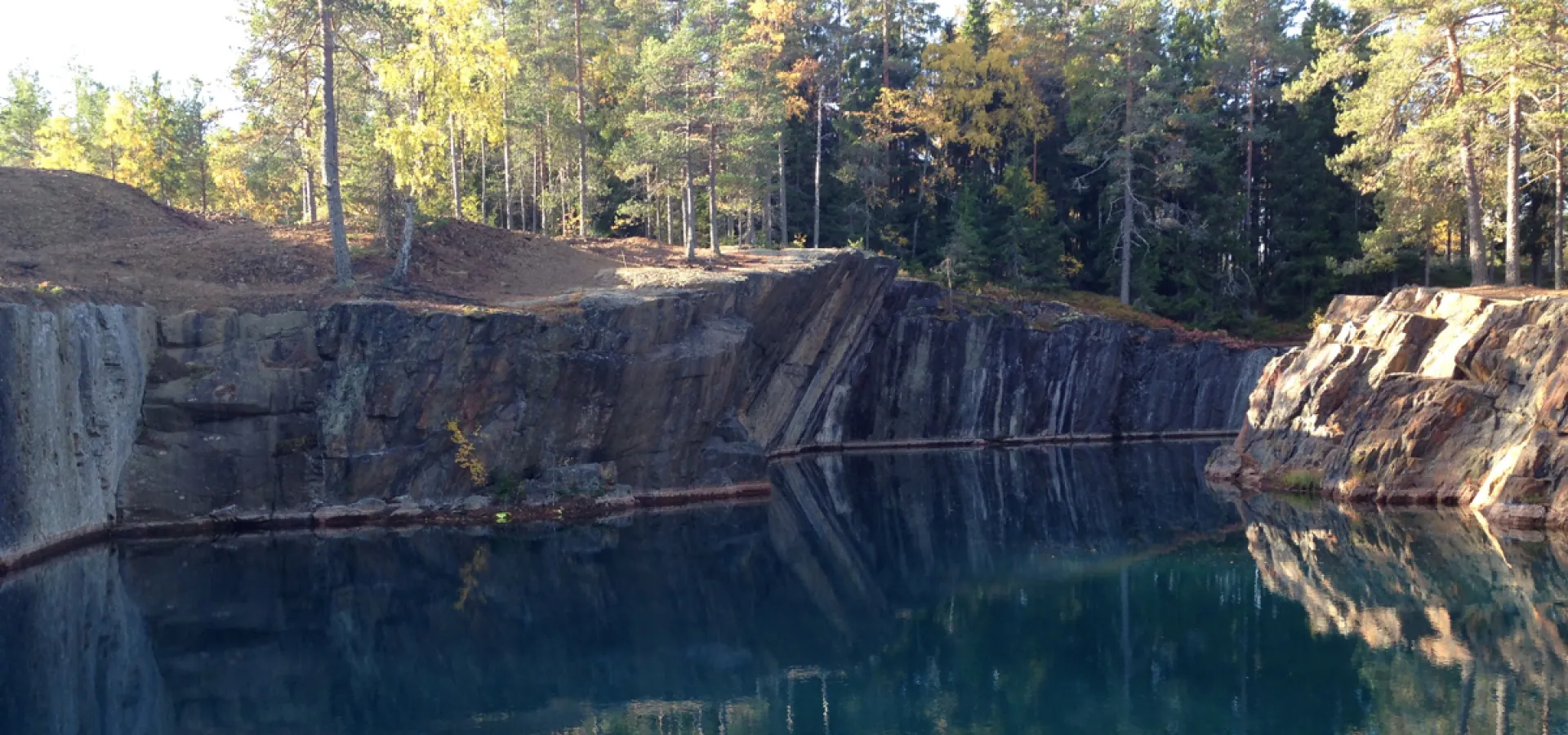 Turkosblått vatten i Östra Silvbergs Gruva i Säter.