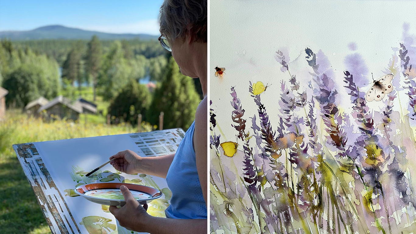 – Jag har alltid med mig kameran och knäpper bilder med mobilen. Det finns ju färger och former överallt och jag tycker om gamla ting. Ofta skapar jag en miljö av flera bilder jag tagit, kanske på en lada eller skuggorna över en åker, en björkskog eller vitsippor. Akvarell är något man försöker förstå sig på hela tiden, det handlar om att alltid lära nytt och komma underfund med hur det fungerar. Akvarellen har alltid sista ordet om man ger den en chans och då kan det bli väldigt snyggt, om man inte är där och petar för mycket. Mitt måleri får inte bli för romantiskt, men ska göra betraktaren lite varm inombords. Det är nog det jag vill förmedla, en varm känsla.