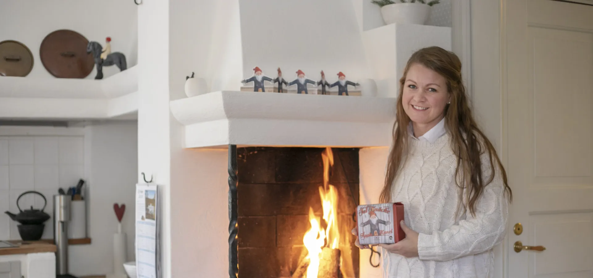 Linda Leander är född och uppvuxen i Leksand, där hon idag bor tillsammans med man och tre barn. Till vardags arbetar hon inom familjeföretaget Sverigealmanackan och i yrket som illustratör handlar det mesta om färg och form. Det handlar också om att låta de två delarna samspela för att skapa en vacker och inbjudande helhet. I utformingen av motivet på knäckepaketet är tanken att illustrationen redan i butikens hylla ska sprida glädje och värme.