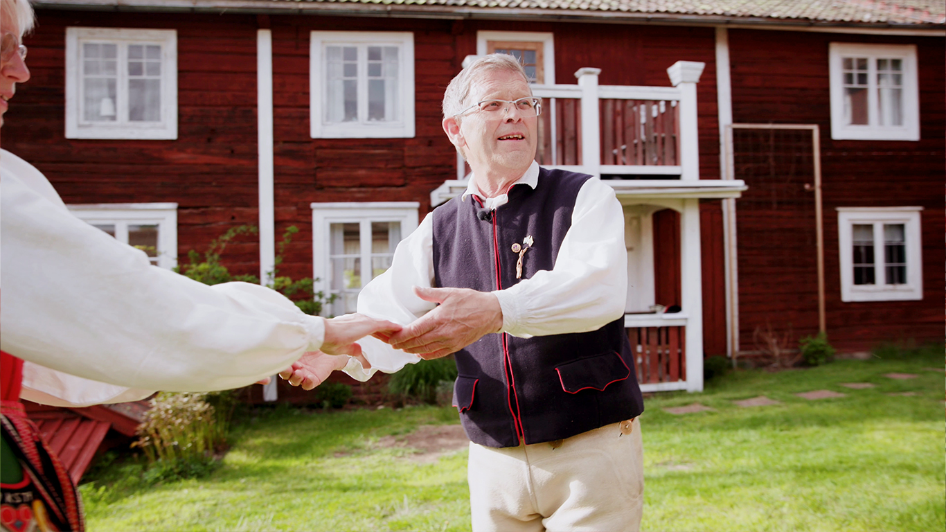 - Våmhus Gammelgård, Mora. Här sker firandet på midsommardagen och inleds när folkdanslaget bär in blomsterrankan.