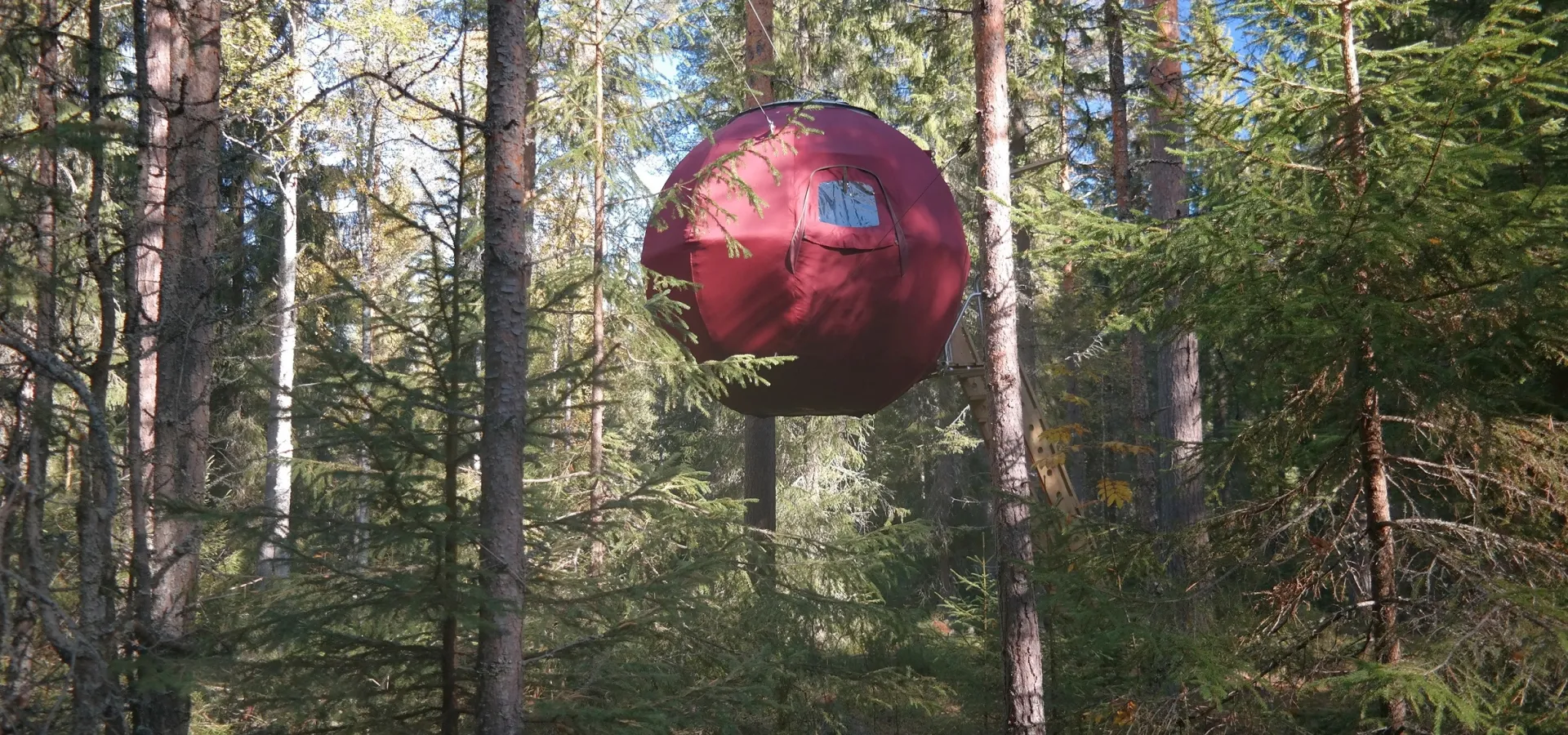 Kryp in i kojan jämte trädkronorna. Låt vinden och ljudet av den sprakande kaminen vagga dig till sömns. I de unika skogskojorna hos Näsets Marcusgård i Furudal bor du bokstavligt talat mitt i naturen.