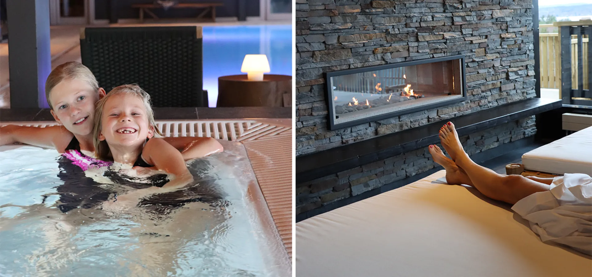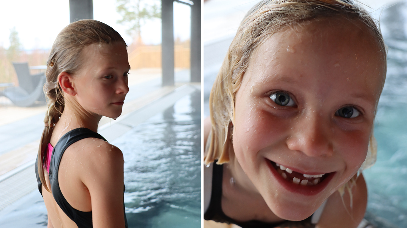 – Olga gillade allt och speciellt känslan av bubbelpoolens bubblor. Nora fastnade för de varma källorna utomhus, både för själva värmen och för den fina utsikten över Siljan och bergen. Pär uppskattade att det var väldigt rent och fint, med trevligt bemötande från personalen, härliga utrymmen och smakfulla möbler inomhus. Jag själv instämmer med Nora, det bästa var den varma källan utomhus. Underbart att sitta i kalla friska luften i riktigt varmt vatten med lite massage på vaderna, det var jätteskönt. Jag fick dessutom en liten njutstund själv, för barnen fick nästan panik för de tyckte det var så varmt, haha.