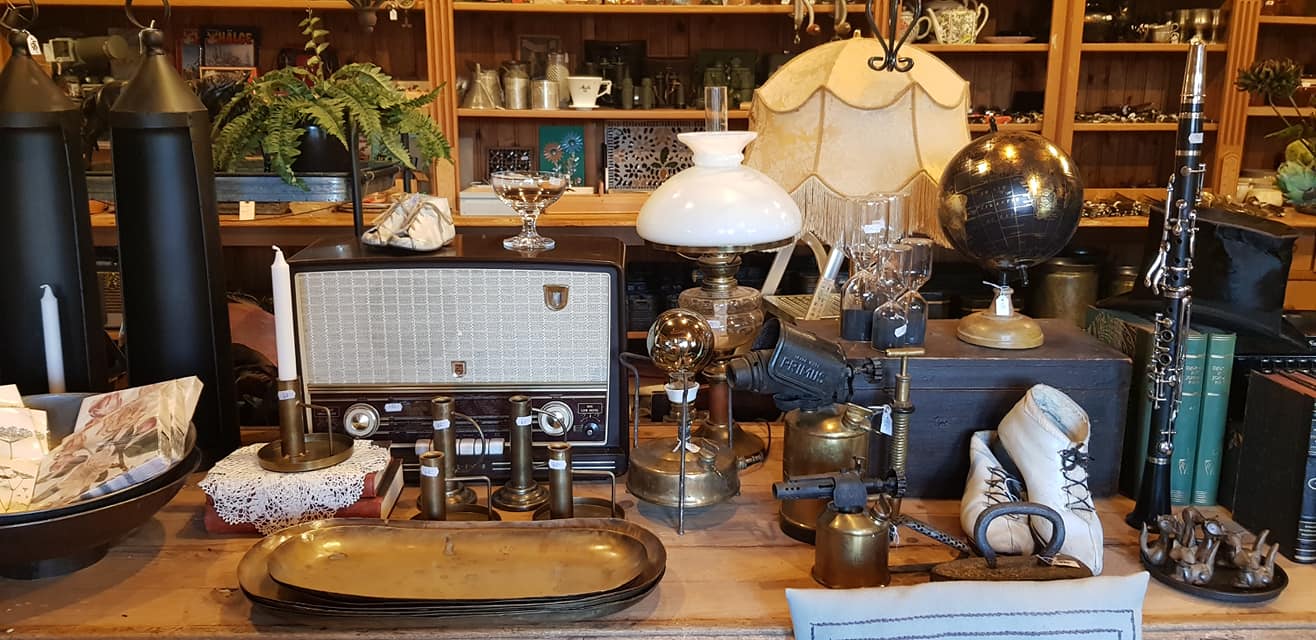 På många sätt är det den här mixen som skapar den unika charmen. Det egna lilla universum som möter besökaren som kliver in genom de gamla trädörrarna är något utöver det vanliga. Prylar från golv till tak, retroporslin, lampor, omgjorda och uppfräschade möbler, oväntade detaljer och påhittiga skapelser. Allt som i en välkoordinerad och genomtänkt tidsresa.