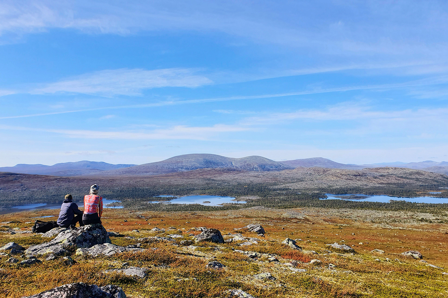 Efter en lättvandrad stig går vandringen över trädgränsen upp på fjället och du möter en mer storblockig terräng. Från toppen har du en fantastisk utsikt över omkringliggande fjäll och vattendrag.