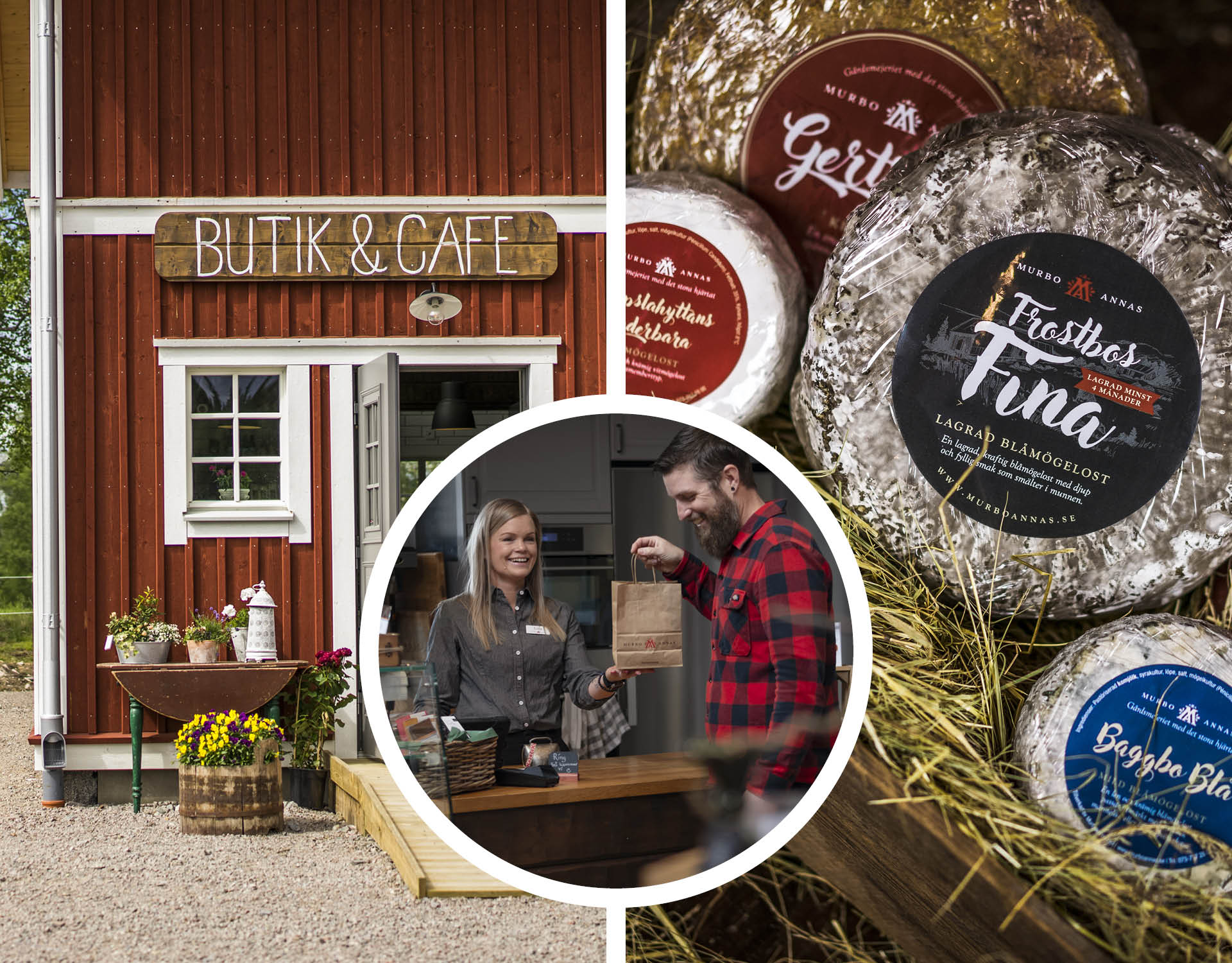 Murboannas is widely known for its cheese. In the farm shop Murboden, you will find their range of cheeses made in their own dairy. Hard and soft, mild or flavorful – there is something for everyone here. Perfect for summer barbecue evenings is the salty and creamy grilling cheese. If you are looking for something sweet with your coffee or as a dessert, their cheesecake is recommended together with jam and cream. The shop also has a carefully selected assortment of locally produced goodies such as marmalades, oils, coffee and tea.