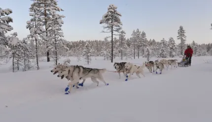 Get a taste of the husky sport. Drive your own team with four sled dogs through the winter landscape.