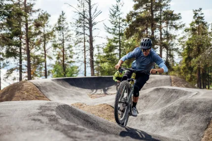 The pump track has an area of about 1,500 square metres and is about 200 metres long, filled with wonderful bumps and turns for those who like to pump their way through.