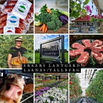 Tällberg, Laknäs, Sturängsvägen 20I gårdsbutiken och i de prunkande växthusen finns ett brett sortiment med säsongens närodlade grönsaker, blommor, delikatesser och inredning. Erkers Lantgård är en levande gård och i hagarna intill betar gårdens hästar och kor. Här finns naturen och lugnet.