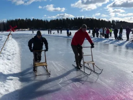 Visa kartan3 km resp. 4,5 km. Vid Flosjöbadet i sydligaste delen finns grillplats och bänkar för påtagning av skridskor. Toalett och värmemöjlighet finns på Dala-Floda Värdshus. Det finns även en grillplats vid Bakke lada längst inne i Flosjöviken.