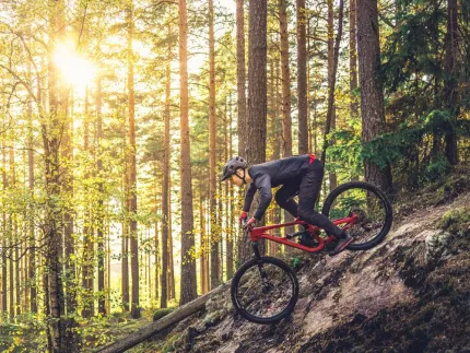 Visa kartanMed sikte på Runn början Sjöstigen med ett lite högre dropp, som även går bra att cykla runt, följt av ett par fartfyllda hopp. Därefter ändrar leden karaktär och blir en mer naturlig men fullt lika utmanande led bland stenar och berghällar. Precis som Baksidan en klassisk led i Källviken.